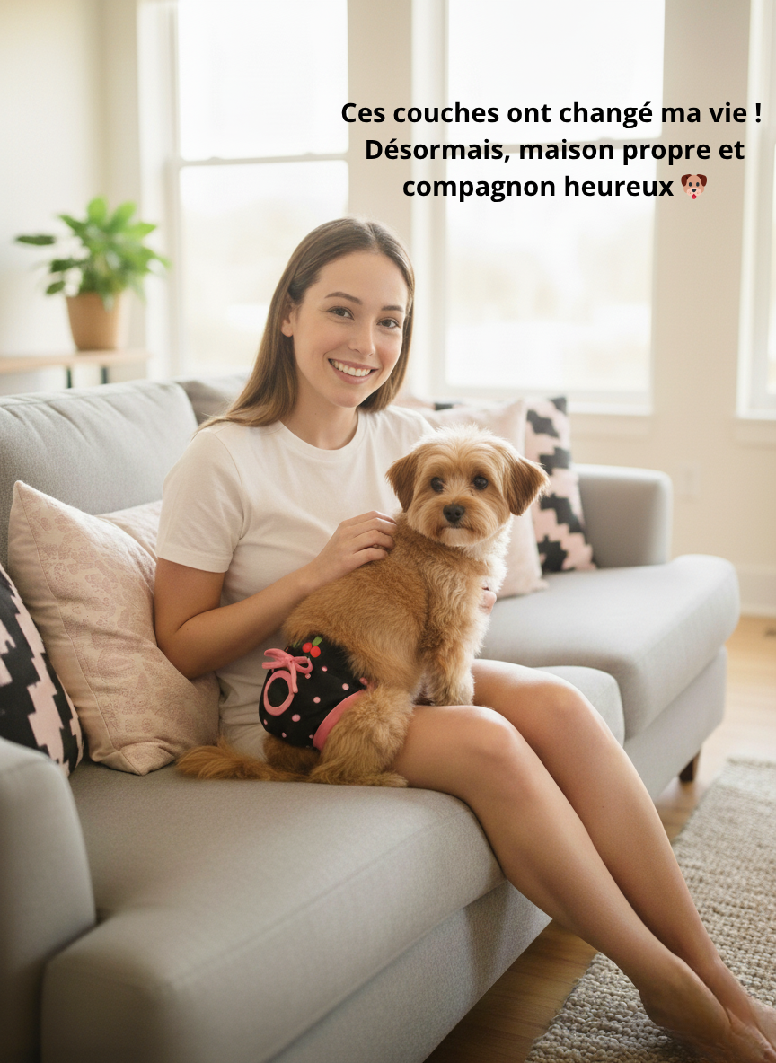 des propriétaires disent que les couches Ruffzy™ ont amélioré le confort et l’hygiène de leur chien.